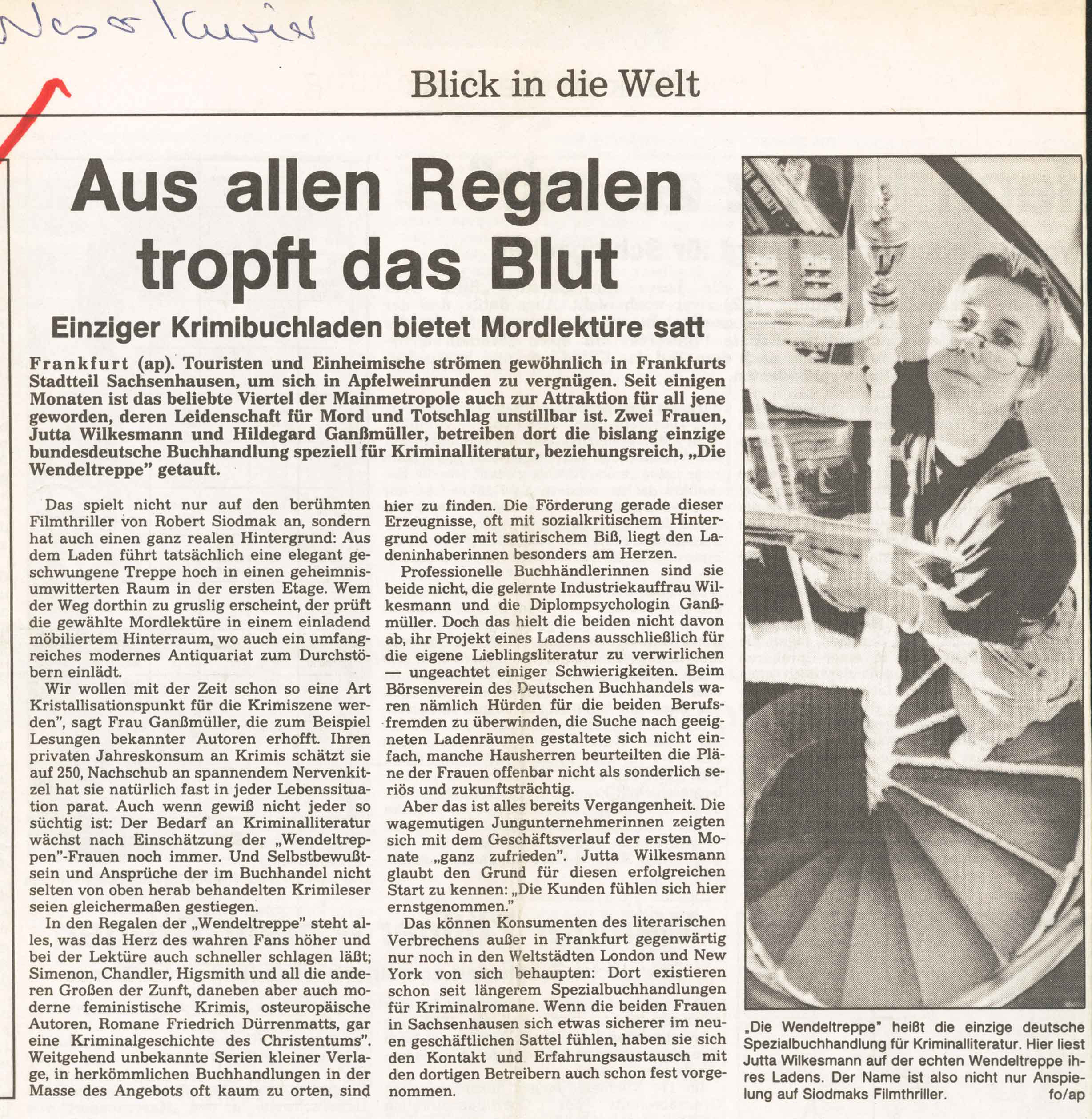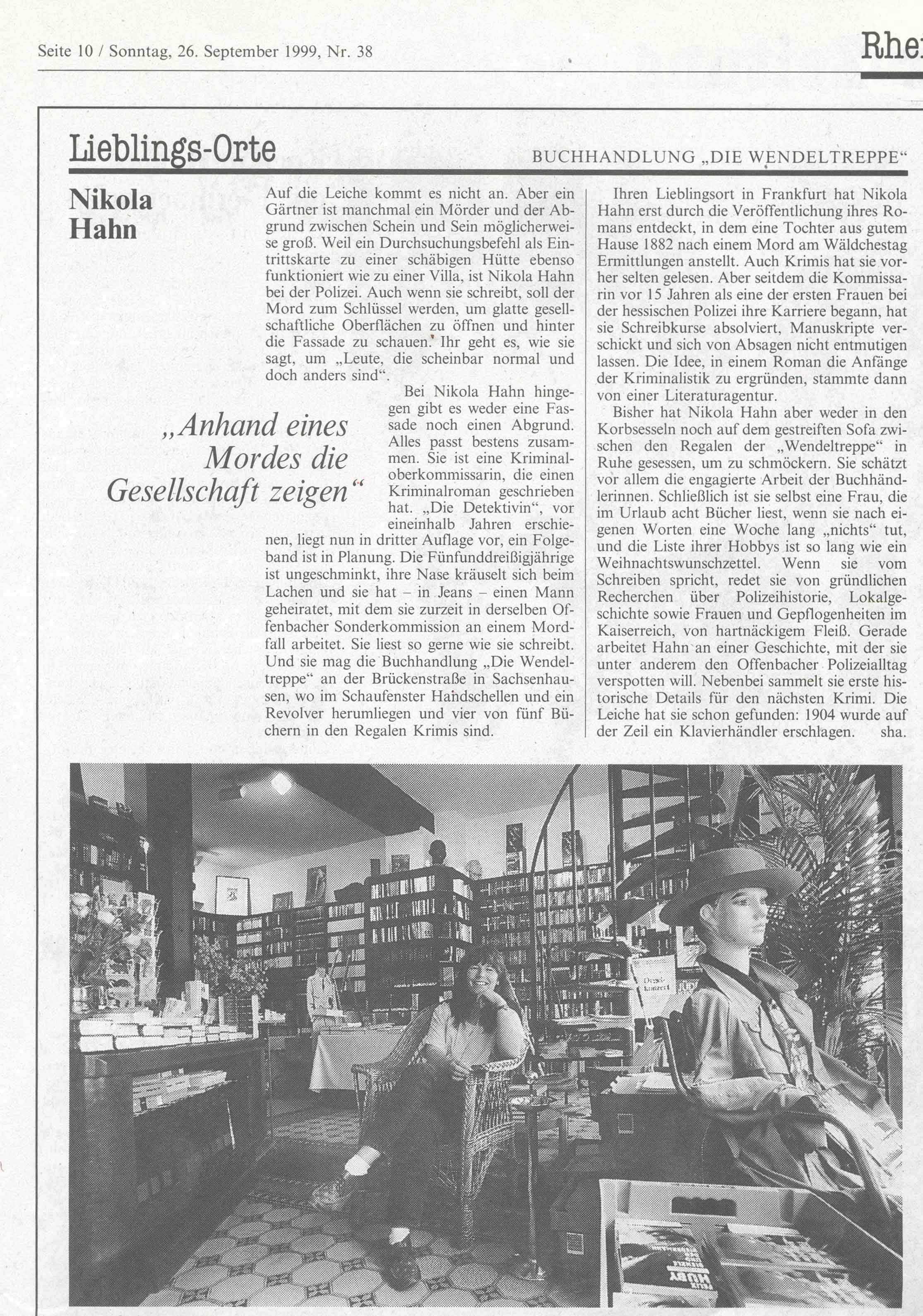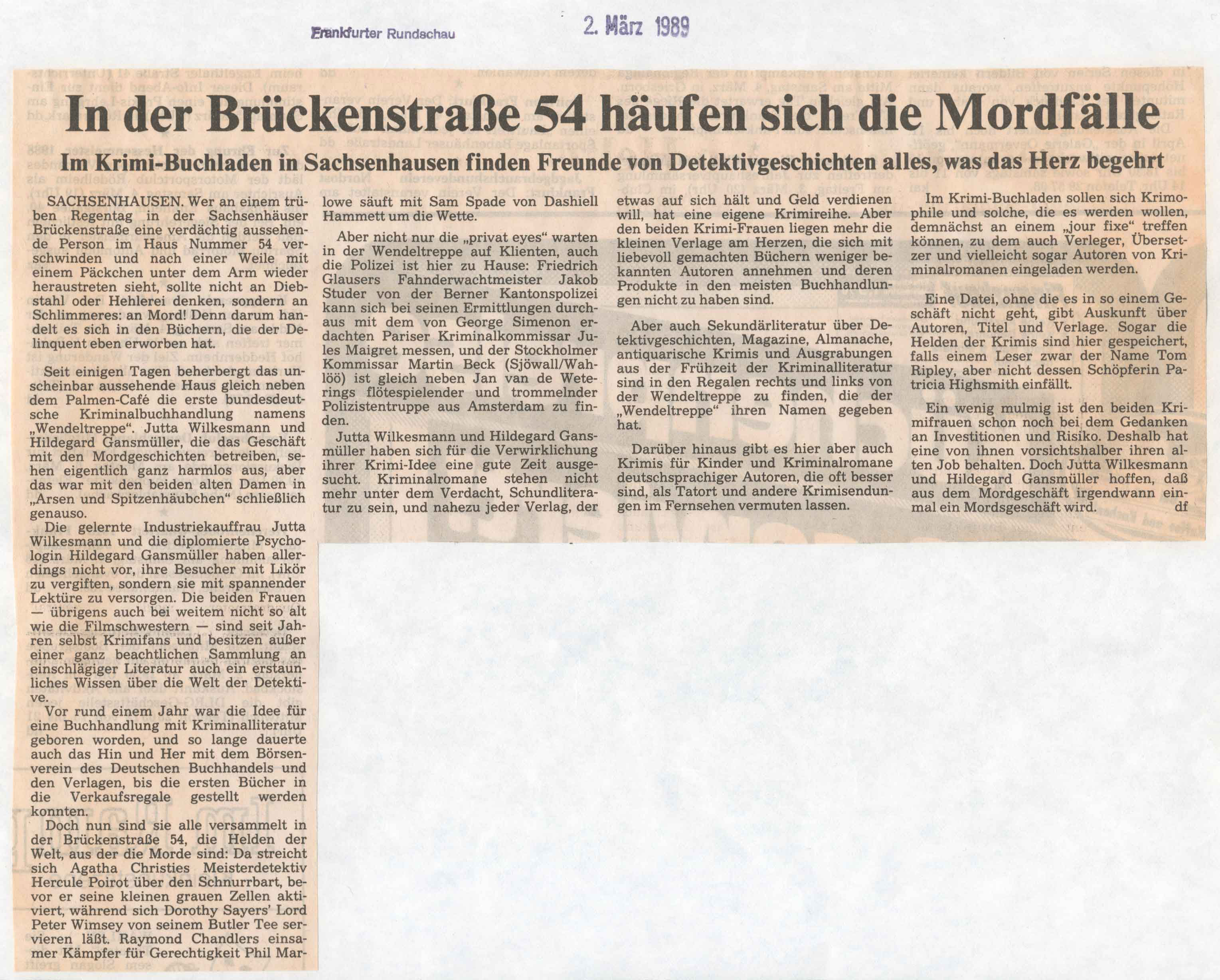 Die Spezialisierung auf Kriminalliteratur war uns wichtig, aber da wir Büchern nicht widerstehen können, hatten wir von Anfang an auch ein kleines Sortiment an skurrilen, ausgefallenen, interessanten und vergessenen oder einfach schönen Büchern, die unsere Aufmerksamkeit erregt hatten. Gleichzeitig bauten wir unser Antiquariat auf. Wir konzentrierten uns zunächst auf Kriminalromane. Im Lauf der Zeit kamen viele signierte Bücher aus allen Bereichen der Literatur dazu. Nach 4 Jahren zogen wir auf der Brückenstraße in einen größeren Laden um, wo wir bis heute zu finden sind. |